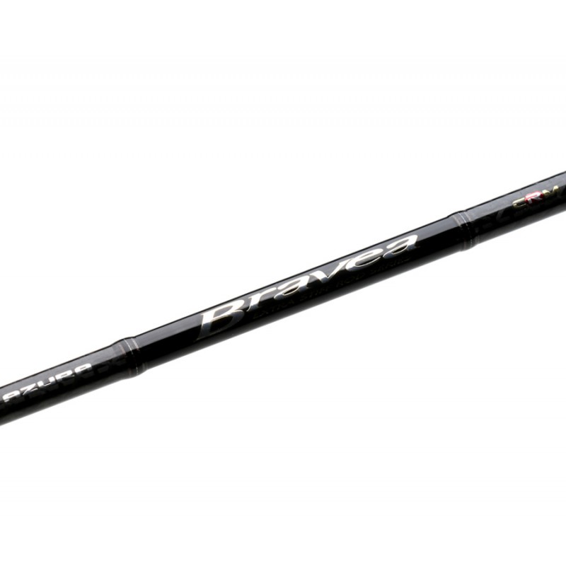 Azura Bravea – серия сверхбыстрых удилищ, как спиннинговых, так и кастинговых. Все они выполнены в духе американских традиций бассовой ловли – цельные бланки с тройным запасом мощности и значительной конусностью, небольшая длина и, конечно же, жесткость! Даже тестовый диапазон здесь заявлен как на американских удилищах – в долях унции. Но если не говорить о ловле басса, который водится в Америке, то и в наших условиях такие снасти востребованы, причем, постоянно. Они уверенно просекают жесткую судачью пасть, превосходно работают с крупными и тяжелыми джиговыми приманками, твичат относительно крупные воблеры, дают возможность провести переднеогруженную вертушку с большим лобовым сопротивлением. Кроме того, такая жесткость просто необходима для успешной ловли на незацепляйки самых разных конструкций – все они требуют мощной подсечки для того чтобы рыба оказалась на крючке. Бланки всех удилищ исключительно легкие и имеют прекрасный баланс. Комлевая часть усилена оплеткой, остальной бланк шлифованный, но без лакокрасочного покрытия – для максимального снижения веса. Отсутствие стыка также положительно сказывается на весе удилища, кроме того, цельные бланки демонстрируют идеальную кривую изгиба. Пропускные кольца Fuji KL выступают прекрасным дополнением к легкому бланку. Интересно, что, по мере возрастания нагрузки, удилища начинают работать большей частью бланка, уверенно парируя рывки подсеченного трофея.