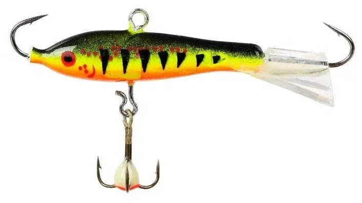 Приманка предназначена для рыбной ловли в зимнее время. Выглядит как небольшая рыбка. На приманку охотно клюют окунь, щука, судак и другие хищные рыбы. В голове и хвосте балансира впаяны одинарные крючки. Снизу на кольце крепится крючок-тройник, на который обычно и зацепляется клюнувшая рыба. На хвосте имеется стабилизатор из пластика.При движениях вверх-вниз приманка уходит то в одну, то в другую сторону, тем самым привлекая внимание хищной рыбы. Балансир покрыт специальной стойкой краской.