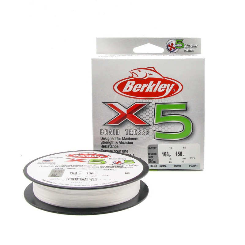 Шнуры линейки X5 Braid состоят из плетения пяти волокон Dyneema. С их помощью удается получить плетенку с высокими параметрами нагрузки на разрыв и при этом минимальной толщины. Такой шнур найдет применение в спиннинговой рыбалке, а также в фидерной или в бейткастинге. Эта плетенка окрашена в белый цвет. Особый подход экспертов компании Berkley к окрашиванию делает цвет шнуров более долговечным. Длина размотки составляет 150 метров. Показатель разрывной нагрузки равен 6,4 кг. Плетенки X5 Braid устойчивы к изнашиванию, поэтому их срок работы будет более длительным. Гладкая поверхность в сочетании с круглым сечением увеличивает дистанцию заброса, так как трение снижается.
