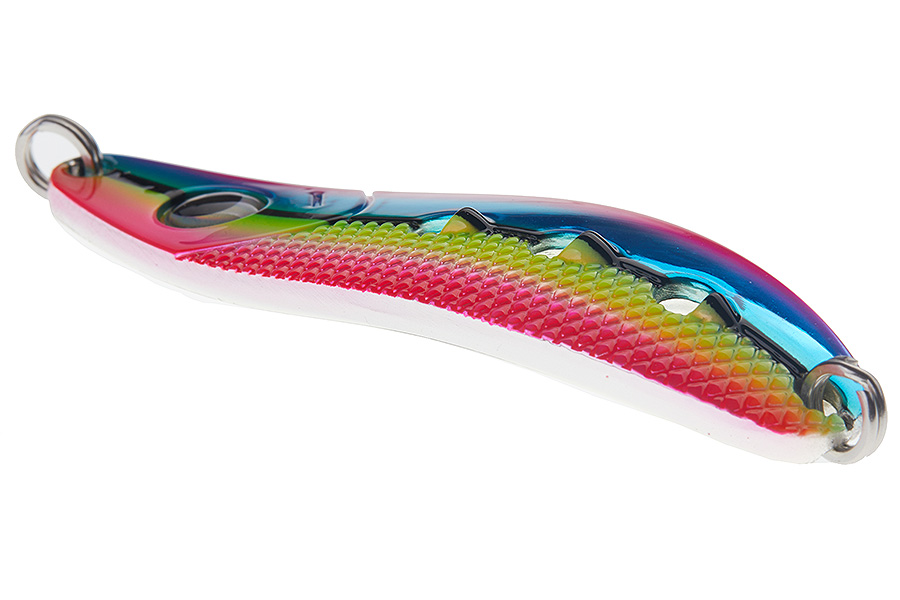 Блесна Chum предназначена для ловли лососевых, в первую очередь кеты. Дополнительные отверстия в блесне создают под водой шумовой эффект, тем самым обеспечивая привлечение внимания подводных обитателей. Яркие цвета блесны не оставят равнодушными проплывающую рядом рыбу. Все блесна имеют серебристый окрас в двух вариантах: блестящий и матовый. Блестящий рекомендуется использовать в пасмурную погоду или по большой воде, а матовые расцветки отлично подойдут для ловли в солнечную погоду или по очень прозрачной воде. Все цвета имеют флуоресцентное свечение на солнце (UV), это значит, что в прозрачной воде их будет очень хорошо видно издали.
