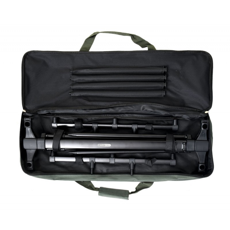 Легкая и прочная карповая подставка на три удилища. Каркас род-пода с раздвижной станиной выполнен из алюминия. Ноги также раздвижные, легко регулируются по высоте. Их длина устанавливается с помощью фиксаторов. В комплекте предусмотрен удобный чехол для транспортировки. Чехол выполнен из прочной синтетической ткани, с отдельными карманами для укладки ног. Бузбары с прикрученными ногами позволяют установить их на мягком грунте — это еще одна дополнительная возможность данной модели, которую оценят рыболовы.
