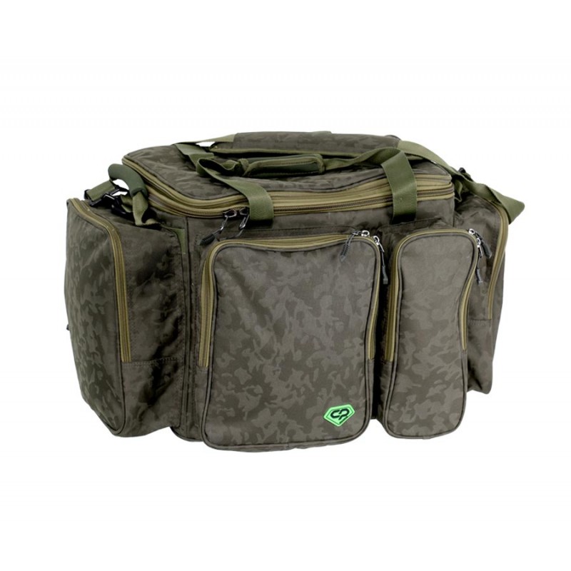 Большая и вместительная карповая сумка со столиком в комплекте. Сумка выполнена из прочного полиэстера и оснащена двумя фронтальными и двумя боковыми карманами на молниях. Замки молний оборудованы прорезиненными пуллерами. Столик имеет тканевое основание с упругим наполнителем. Такое решение позволяет установить стол горизонтально даже на неровной поверхности. Размер столика — 42x31x6 см. Достаточно высокий бортик по периметру стола не позволит скатиться и упасть вещам или рыболовным аксессуарам на землю. Кроме того, столик можно закрепить непосредственно на сумке сверху — для этого предусмотрены две Fastex защелки. Для удобства транспортировки предусмотрены две ручки с неопреновой накладкой и регулируемый наплечный ремень с эргономичной вставкой.