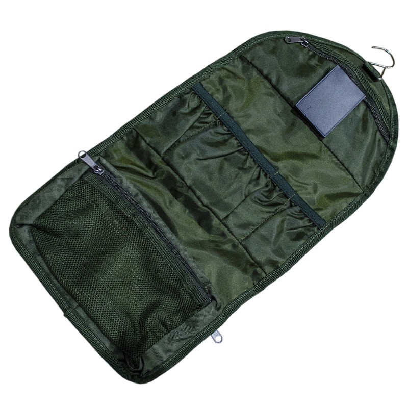 Carp Pro Camping Organizer – складная компактная сумка-органайзер для туалетных принадлежностей. Имеет специальную подвесную конструкцию. Оснащена походным зеркалом, множеством кармашков и сетчатых мешочков, в которых удобно разместить зубные щетки, тюбики с пастой, кремом, мыло, шампунь, бритвенные принадлежности и предметы гигиены. Camping Organizer идеально подходит для рыболовных выездов, путешествий, кемпинга и отдыха на природе.