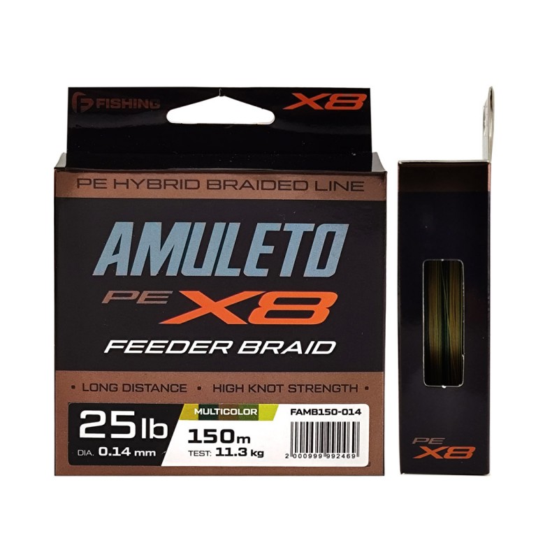 Шнур доступен в расцветке Multicolor, где цвет меняется каждые 20 см, что облегчает контроль за оснасткой в воде при любом освещении. Amuleto Braid PE X8 Feeder подходит как для профессиональных рыболовов, так и для любителей фидерной ловли, обладая отличной прочностью, устойчивостью к износу и долговечностью. Соотношение цена/качество делает его одним из лучших в своём сегменте.