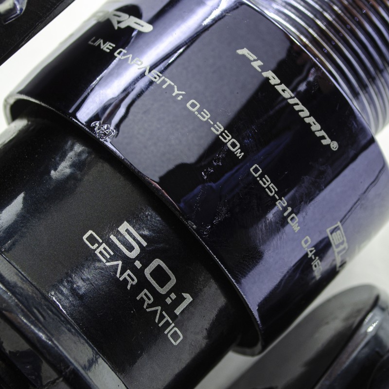 Flagman Magnum Black Carp 5000 – доступная катушка для классической карповой ловли. Корпус и ротор изготовлены из высокопрочного пластика. Механизм собран на трех высококачественных подшипниках. Крупная пластиковая шпуля с коническим передним буртиком имеет большую площадь намотки, что позволяет выполнять дальние и точные забросы. Кроме того, катушка оснащена системой Free Spool, дискретным антиреверсом, и за один оборот ручки выбирает 85 см лески. К ее достоинствам также можно отнести компьютерную балансировку ротора, надежный фрикцион, редукцию 5,0:1, вес 455 г и лесоемкость – 210 м лески диаметром 0,35 мм.