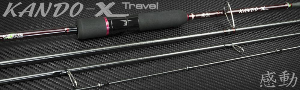 Серия Kando-X Travel состоит из трех моделей длиной 2,29 м, различающихся мощностью. Строй у них средне-быстрый, с довольно жёсткой вершинкой, что позволяет ловить на приманки любого типа и на достаточно сильном течении. Основная идея Kando-X Travel наряду с компактностью — максимальная универсальность. С таким удилищем можно поехать в незнакомое место и ловить там на вращающиеся и колеблющиеся блёсны, воблеры, джиговые приманки…
