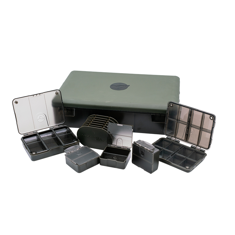 Korda Tackle Box Bundle Deal – полная универсальная система хранения, призванная пополнить арсенал современного карпятника. Изготовлена из прочного прозрачного пластика. С этой новой коллекцией коробок у вас все теперь будет под рукой! В набор входит мультифункциональная коробка Tackle Box, а также такие незаменимые органайзеры, как большая коробка для хранения ледкоров, две миникоробки с 9 и 16 отделениями и три коробочки для мелочей.В комплект входят:- Коробка TackleBox - Коробка Large Leader Safe- Коробка Mini Box на 9 отделений- Коробка Mini Box на 16 отделений- Три коробочки Accessory Boxes