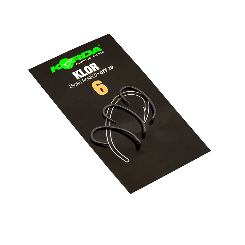 У Klor очень агрессивная форма (даже в большей степени, чем у нашего крючка Kurv Shank), с острием на одной линии с глазом, и это побуждает его быстро поворачиваться и хвататься за пасть карпа. Широкий хвостовик и повернутая проушина также означают, что крючок можно использовать без термоусадочной трубки или кикера.