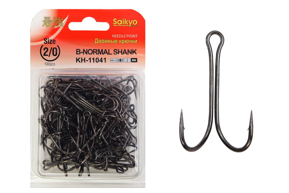 Кованые двойные крючки высочайшего качества с обычным цевьем. Применяются для ловли на искусственные приманки и на живую насадку. Могут применяться при оснащении жерлиц, кружков и прочих пассивных оснасток. Великолепная заточка жала.\r\r• Заточка по принципу игольного жала (Niddle point)\r• Кованый крючок\r• Прямое жало крючка\r• Цвет - Black Nickel