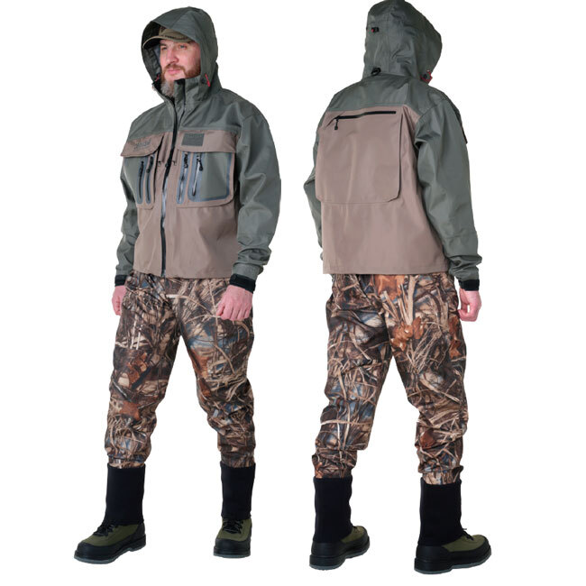 Куртка Alaskan River Master изготовлена из трехслойной современной мембранной ткани AERO-TEX, эффективной и долговечной. Куртка отвечает всем самым последним требованиям рыболовов, как по функциональности, так и по качеству и удобству.\r\r• Водонепроницаемость: 30000 mm (H2O)\r• Дышащая способность: 15000 gr/m2/24h\r• 3-х слойная мембрана AERO-TEX\r• Брызгозащитные молнии YKK с термоламинированием\r• Удобные регулировки капюшона по высоте и объему\r• Специальная водонепроницаемая регулируемая конструкция манжет\r• Множество функциональных карманов для коробок, подлесков и т.д.\r• Большие нагрудные карманы с быстросохнущей флисовой подкладкой могут также служить для обогрева рук\r• Встроенные ретриверы в нагрудной части\r• Застежка "Велкро" (липучка) на клапане нагрудного кармана\r• Вместительный герметичный карман на спине\r• Внутренний непромокаемый карман для ключей или документов\r• Полукольцо на спине куртки для крепления подсачека\r• Флисовый внутренний воротник