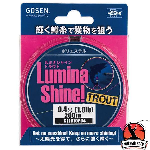 Монофильная леска GOSEN Lumina Shine из полиэстера выполнена в ярких флуоресцентных расцветках для лучшего контроля проводки. Используя специальные красители, японские инженеры добились очень яркого цвета. Отличный вариант для ловли в темное время суток. Благодаря практически нулевой растяжимости полиэстер обладает сверхчувствительностью. Вы всегда сможете увидеть положение лески и не за что не пропустите поклёвку.