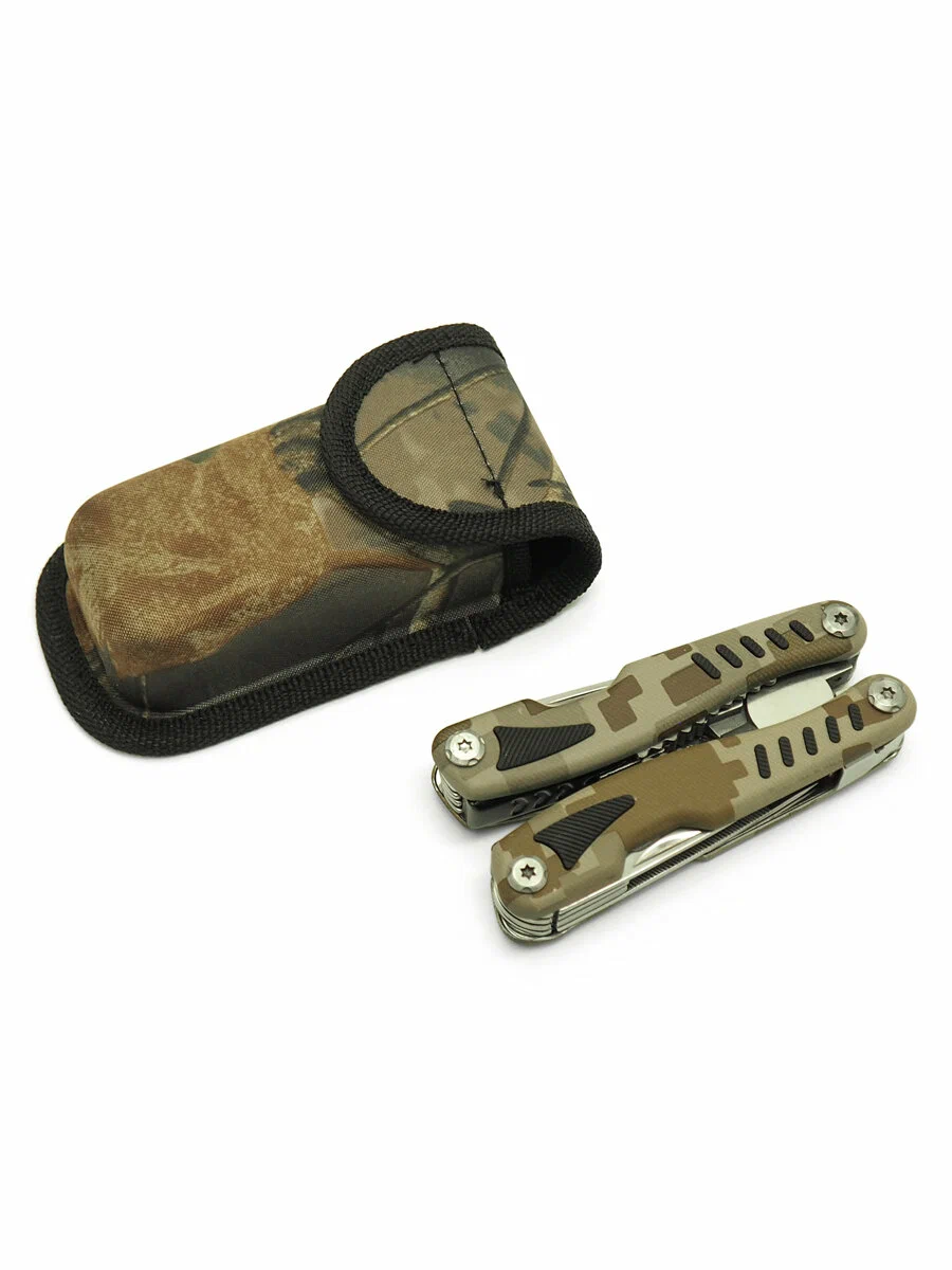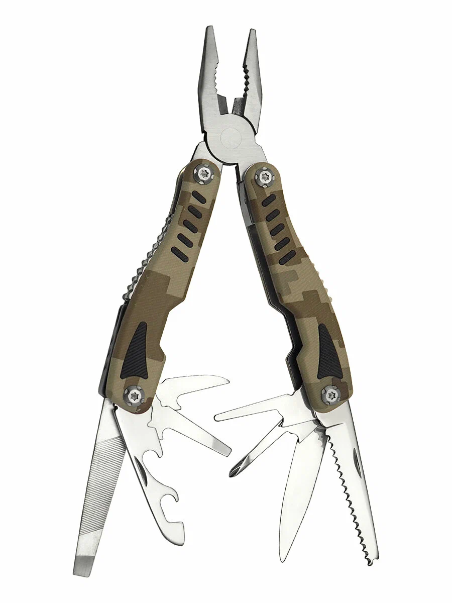 Классический мультитул с плоскогубцами. Длина в раскрытом виде 158 мм, длина клинка 63 мм. Клинок выполнен из нержавеющей стали. В набор также входят пила, крестовая и шлицевая отвертки, вспомогательный клинок, консервный нож, открывалка для бутылок, небольшой двусторонний напильник. Рукоять с накладками из прочного пластика. Он поставляется в прочном чехле из кордуры и картонной коробке. Вес инструмента без чехла 250 г. Мультитул - это набор инструментов, универсальный помощник в походах и путешествиях, на рыбалке. Дома он заменит громоздкий набор для мелкого ремонта. Он миниатюрный и удобный для автомобиля . Универсальный инструмент подойдёт как для повседневного использования, так и для сложных задач. Набор инструментов универсальный, который всегда с вами. Набор поместится в карман брюк или сумку из за его складного формата.
