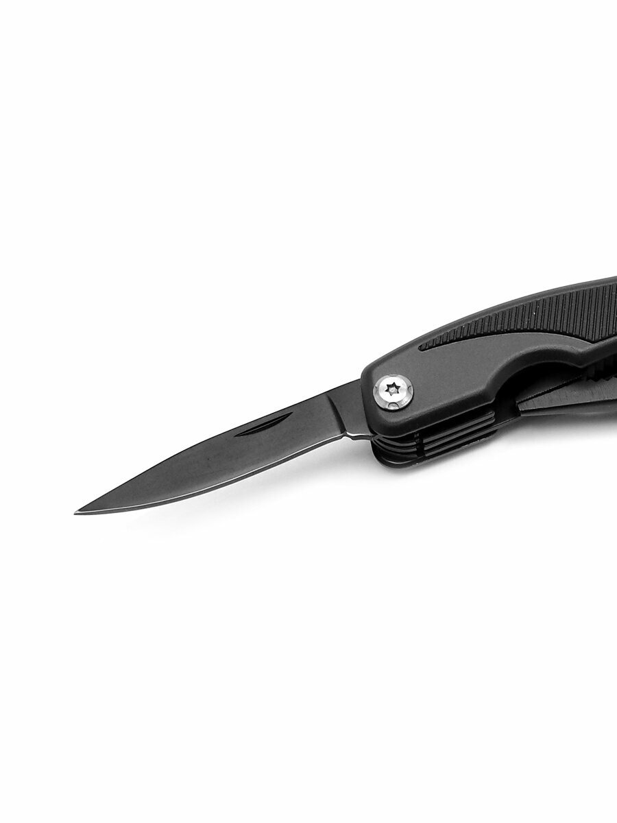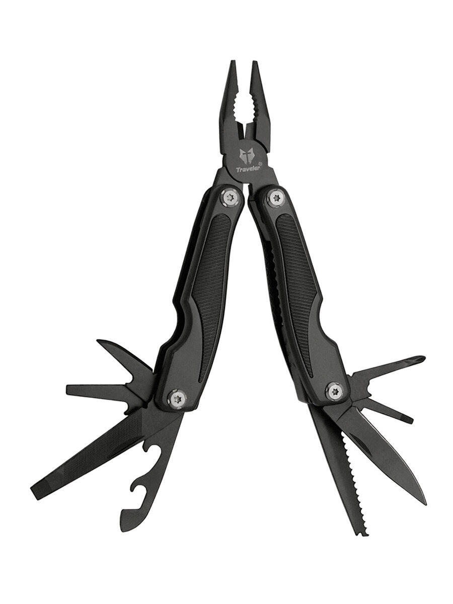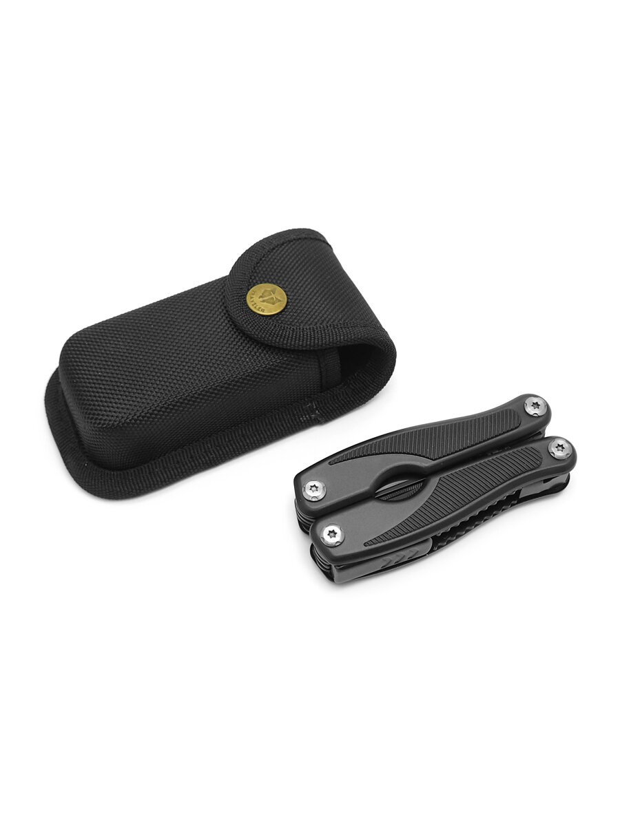 Классический мультитул с плоскогубцами. Длина в раскрытом виде 158 мм, длина клинка 64 мм. Клинок выполнен из нержавеющей стали. В набор также входят пила, крестовая и шлицевая отвертки, вспомогательный клинок, консервный нож, открывалка для бутылок, небольшой двусторонний напильник. Все инструменты, включая клинок, имеют дополнительное защитное покрытие черного цвета. Рукоять с накладками из прочной резины. Мультитул поставляется в прочном чехле из кордуры и картонной коробке. Вес инструмента без чехла 260 г.