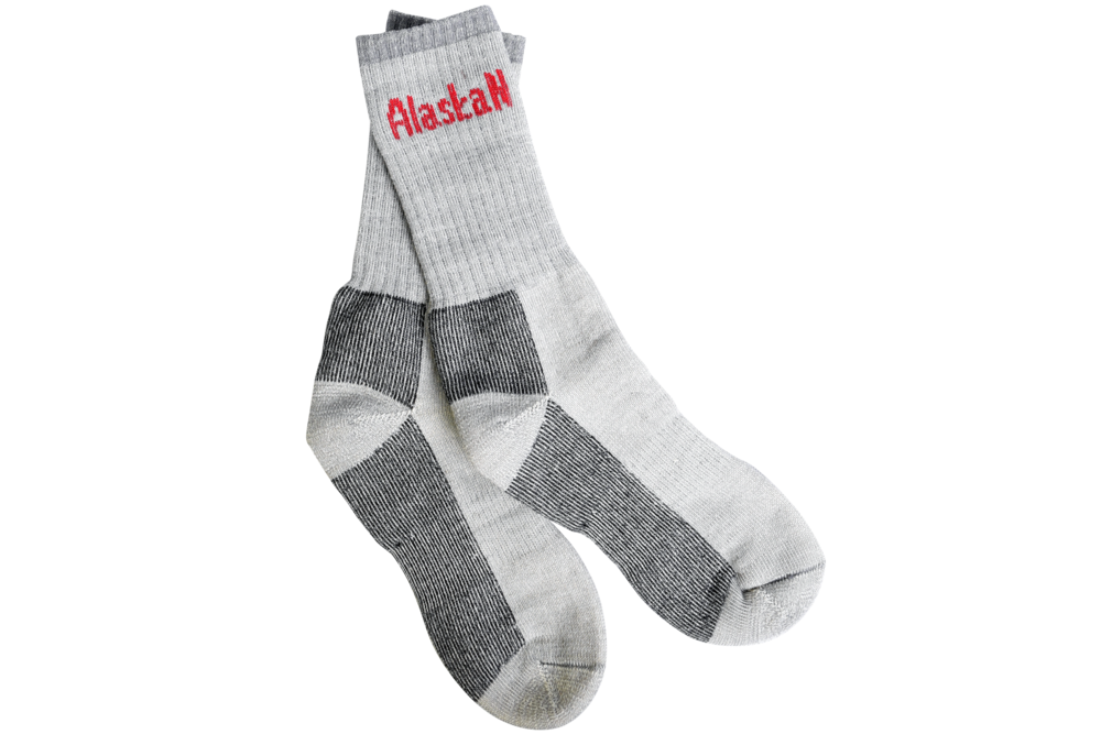 Комфортные высокие носки Alaskan Super Warm. За счет особенностей вязки верхняя часть плотно облегает ногу, благодаря чему носок не сползает. Стрейч-вставка на подъеме стопы обеспечивает превосходное облегание и поддержку, а усиленная пятка - долговечность. Внутренняя часть носков Alaskan Super Warm имеет начес в виде петель для быстрого выведения влаги и сохранения тепла.