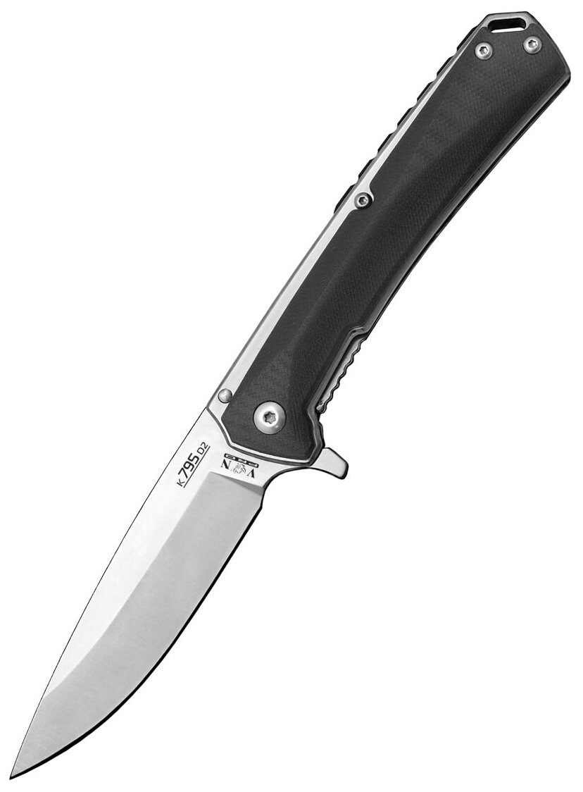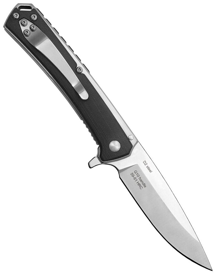 «Germes» - складной нож городского ношения. «Гермес» легко открывается одной рукой благодаря «флипперу» и осевому узлу на подшипнике. Замок «Liner-Lock» прост и надежно запирает клинок. Благодаря высококачественной стали лезвие долго сохраняет остроту и требует лишь подводки. В рукояти имеется отверстие для темляка. Цвет товара