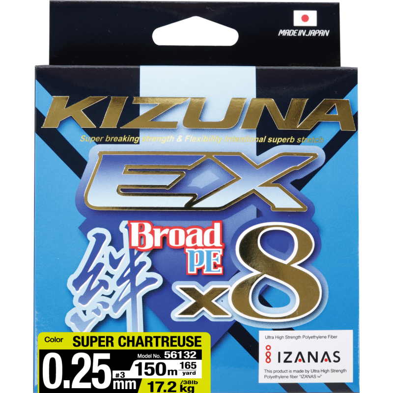OWNER Шнур Kizuna EX X8 Broad PE super chartreuse 150м 0.25мм 17.2кг