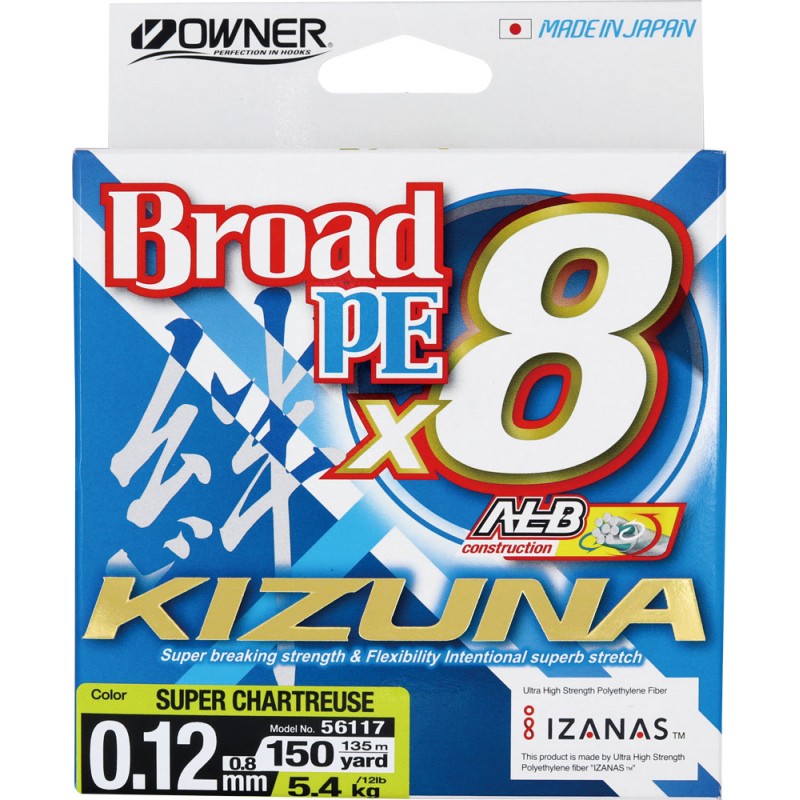 OWNER Шнур Kizuna X8 Broad PE chartreuse 135м 0,12мм 5,4кг