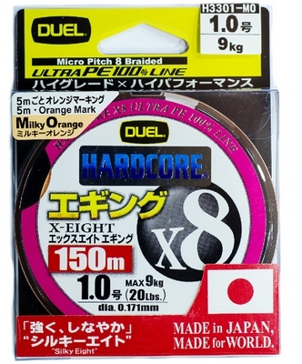 Пл.шн. Duel PE Hardcore X8 Eging 150m MilkyOrange #1.0 (0.171мм) 9.0 кг.