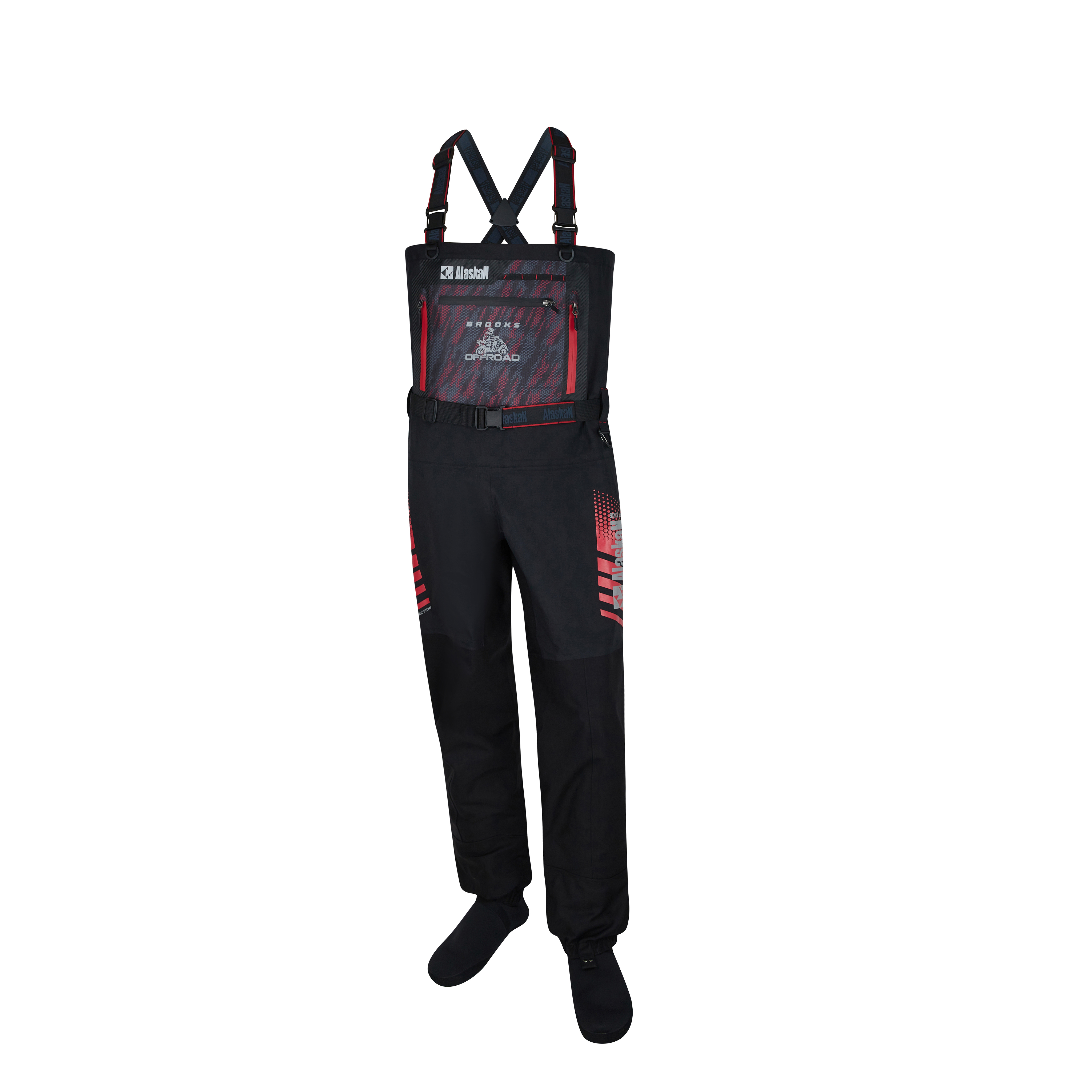 Технологии:\rДышащая мембрана AERO-TEX 3 и 5 слоёв\rПропитка DWR\rСветоотражающие принты\rПроклеенные швы\rАртикулированные 3D колени\rПетли для просушки\r\rНовый стиль Brooks получил свое развитие от классических вейдерсов Adventure. В вейдерсах BROOKS есть все функциональные особенности и карманы. Яркие принты придают этому стилю спортивность, а пропитка DWR защищает от грязи во время катания на квадроцикле в модели сделан специальный анатомический крой колена для удобства сидения на квадроцикле, стуле или на других поверхностях отсутствие шагового шва обеспечивает удобство и защиту от истирания и протечек. Для верхней части вейдерсов применяется 3-слойная мембрана AERO-TEX, для брючин – 5-слойная мембрана (в местах наибольшего истирания). К вейдерсам Brooks разработана куртка Brooks в таком же стиле.\r\rОсобенности:\r• Водонепроницаемость - 20000 мм (H2O)\r• Дышащая способность - 10000 г/м2/24ч\r• Комбинация 3-х и 5-слойного материала AERO-TEX с пропиткой DWR\r• Носки из 4 мм неопрена скроены под правую и левую ступню\r• В комплекте регулируемый пояс с эластичной вставкой\r• Встроенные манжеты (гарды)\r• Брызгозащитные молнии\r• Множество функциональных карманов\r• Регулируемые Х-образные бретели\r• 1 карабин и 2 полукольца, петли для крепления инструментов или аксессуаров\r• Светоотражающие принты\r• 2 кармана на груди и 1 карман с изнанки.