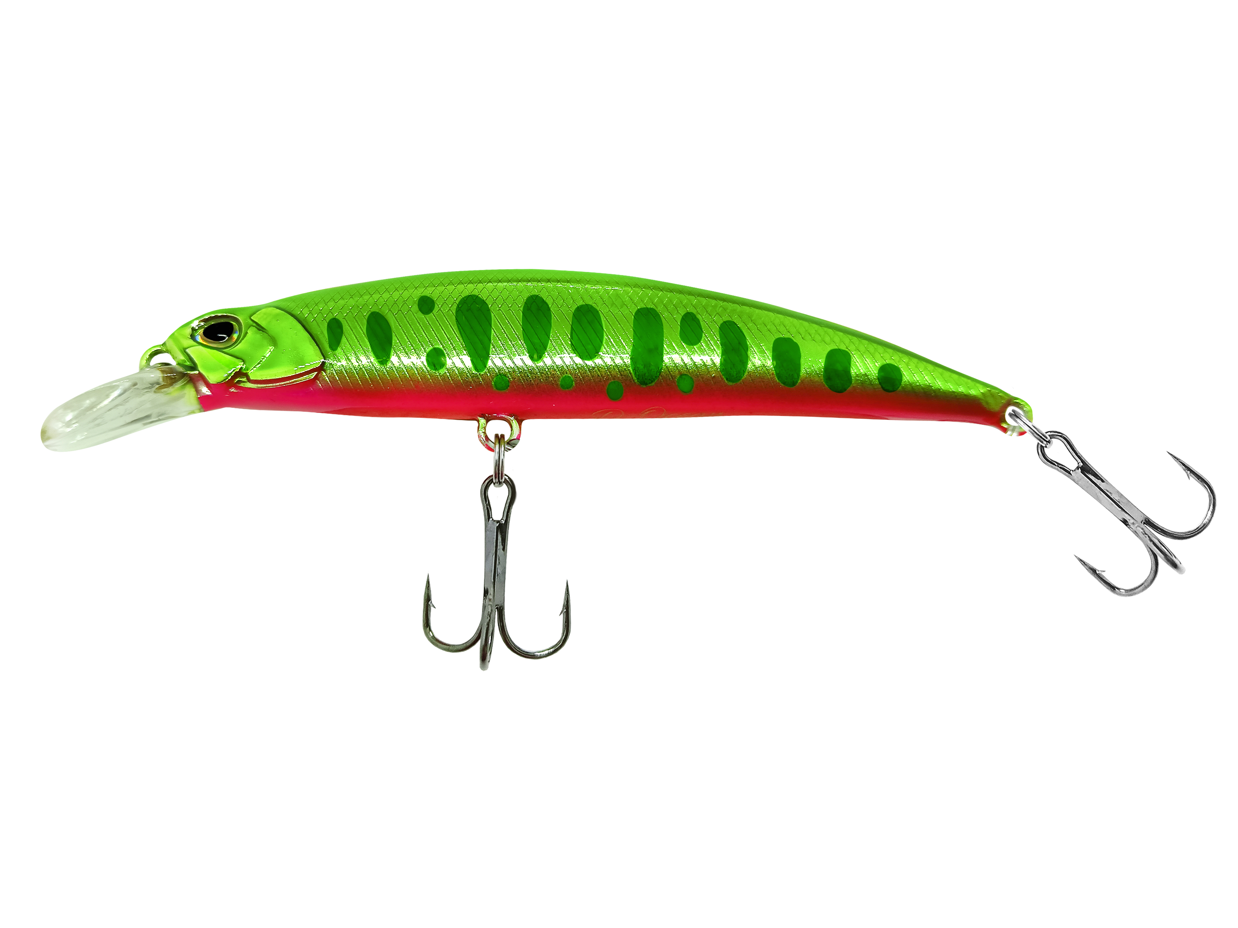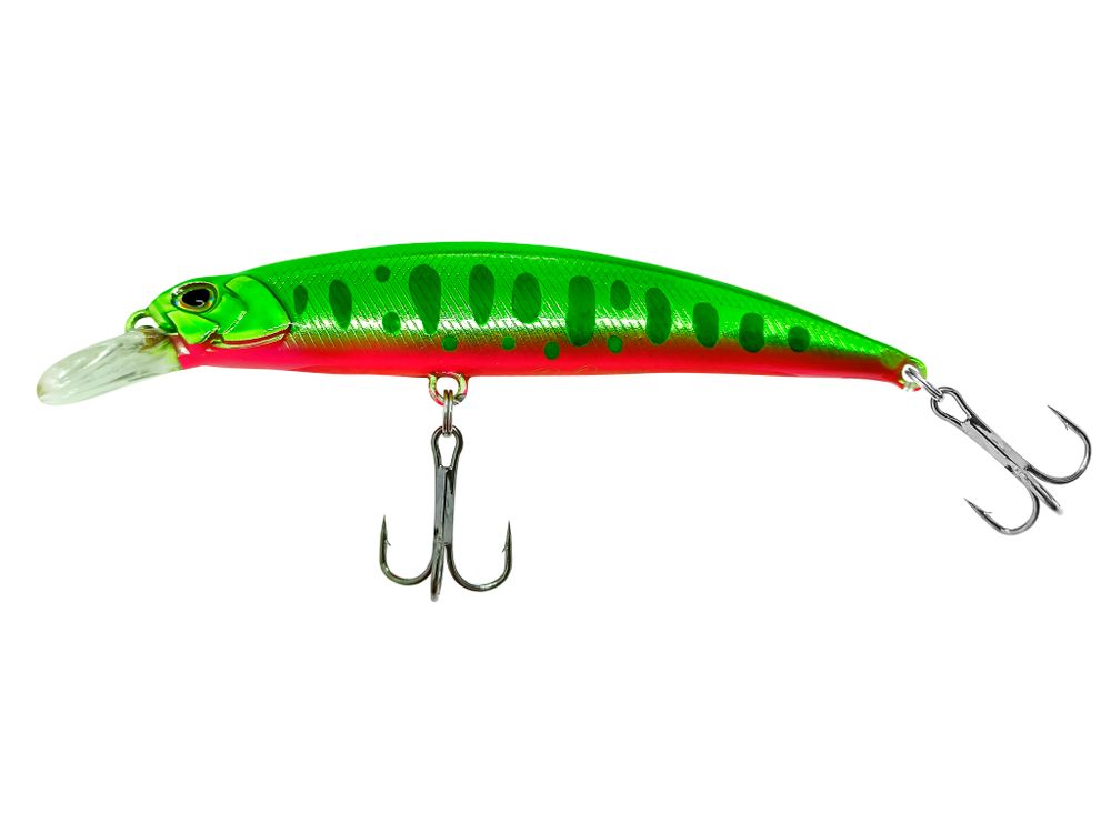Серия тонущих приманок, отличный классический минноу. Основной вид проводки: твичинговая проводка, равномерная проводка, проводка Stop&Go. Твичинговая проводка возможна всех видов – от резкого до размеренного. Отличное качество изготовления – не требует настройки, прекрасно сбалансирован.