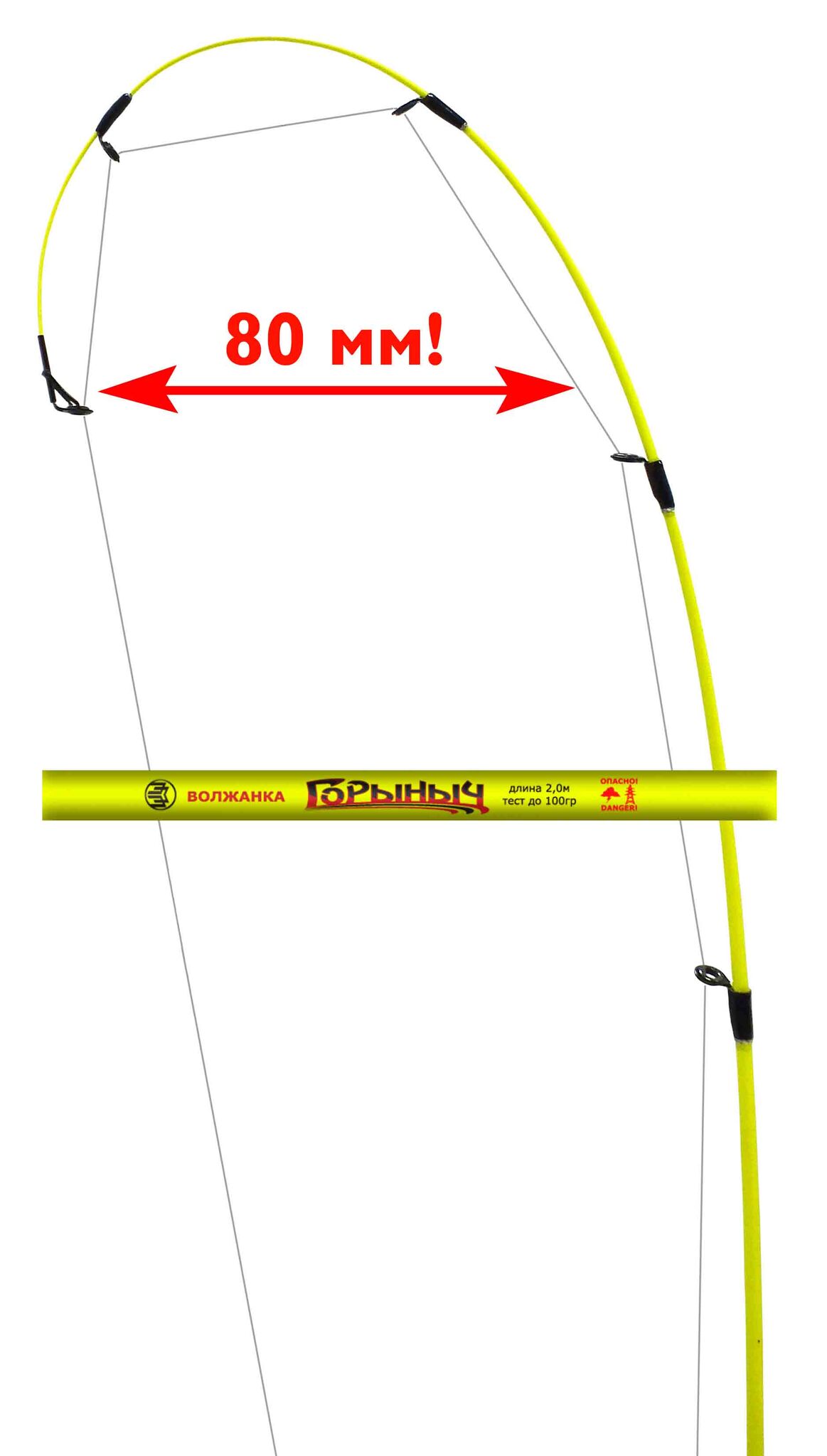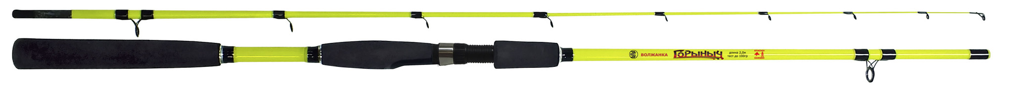 тушку-«нулевку», так и кормушку весом до 100 граммов! Вершинка ГОРЫНЫЧа прекрасно регистрирует при ловле с лодки на донную снасть поклевки хитрой и осторожной плотвы, а при джиговой проводке поролоновой приманкой едва заметные «тючки» судака. Особенно азартна ловля ГОРЫНЫЧем окуня с борта в отвес на зимние блесны. Конструкция и расстановка колец (вкладыши SiC) на удилище позволяет использовать любые типы катушек и лесок. Бланк окрашен в яркий «кислотный» желтый цвет, что делает его заметным в любое время суток. Удобный катушкодержатель и разнесенная рукоятка с покрытием из плотного EVA создают для рыболова дополнительный комфорт.