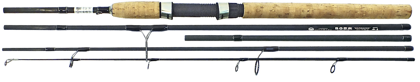 Волжанка Вояж, в многочастном штекерном исполнении, специально разработана для любителей порыбачить в походе полноценным спиннингом. При этом рыболов, в зависимости от условий ловли, может собрать удилище в варианте 2,4 или 2,7 метра. Это обеспечивает проставка-пролонга, входящая в комплект. Несмотря на большое количество секций, спиннинг имеет быстрый строй и обладает высокой надежностью. В производстве использованы углеродные волокна IM 8 и высококачественное связующее. Спиннинг оснащен