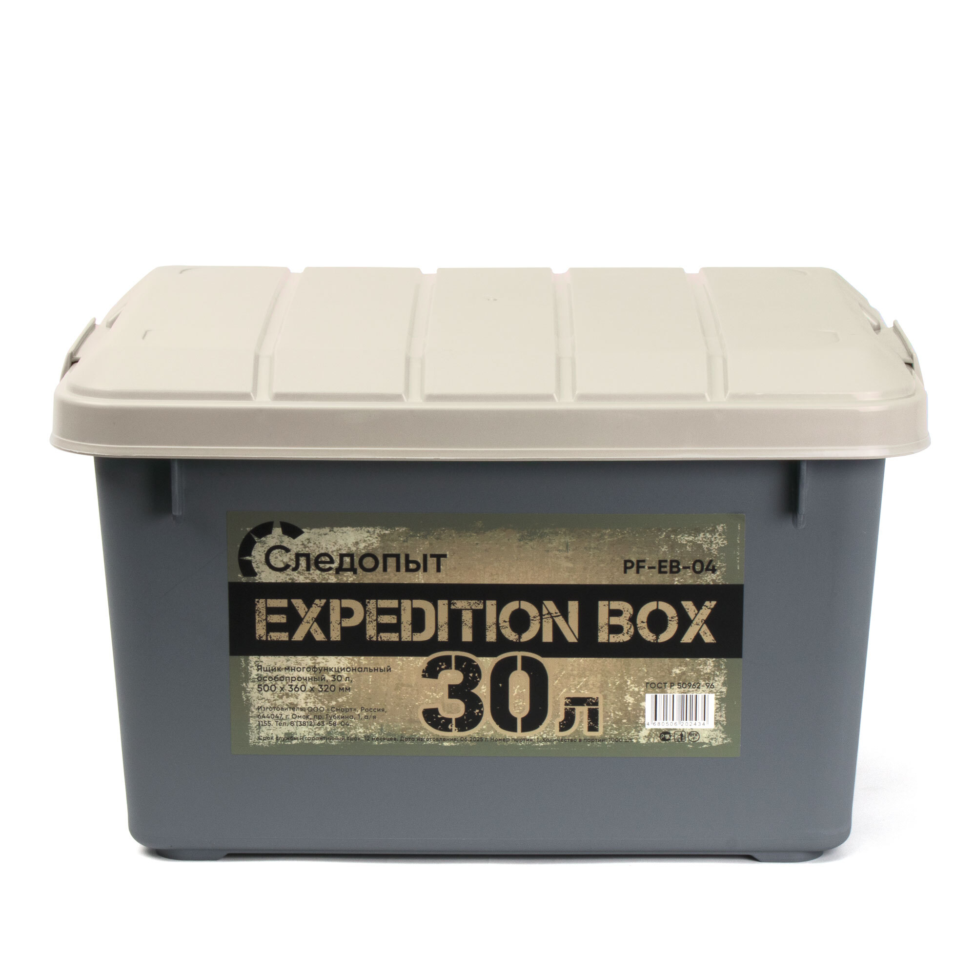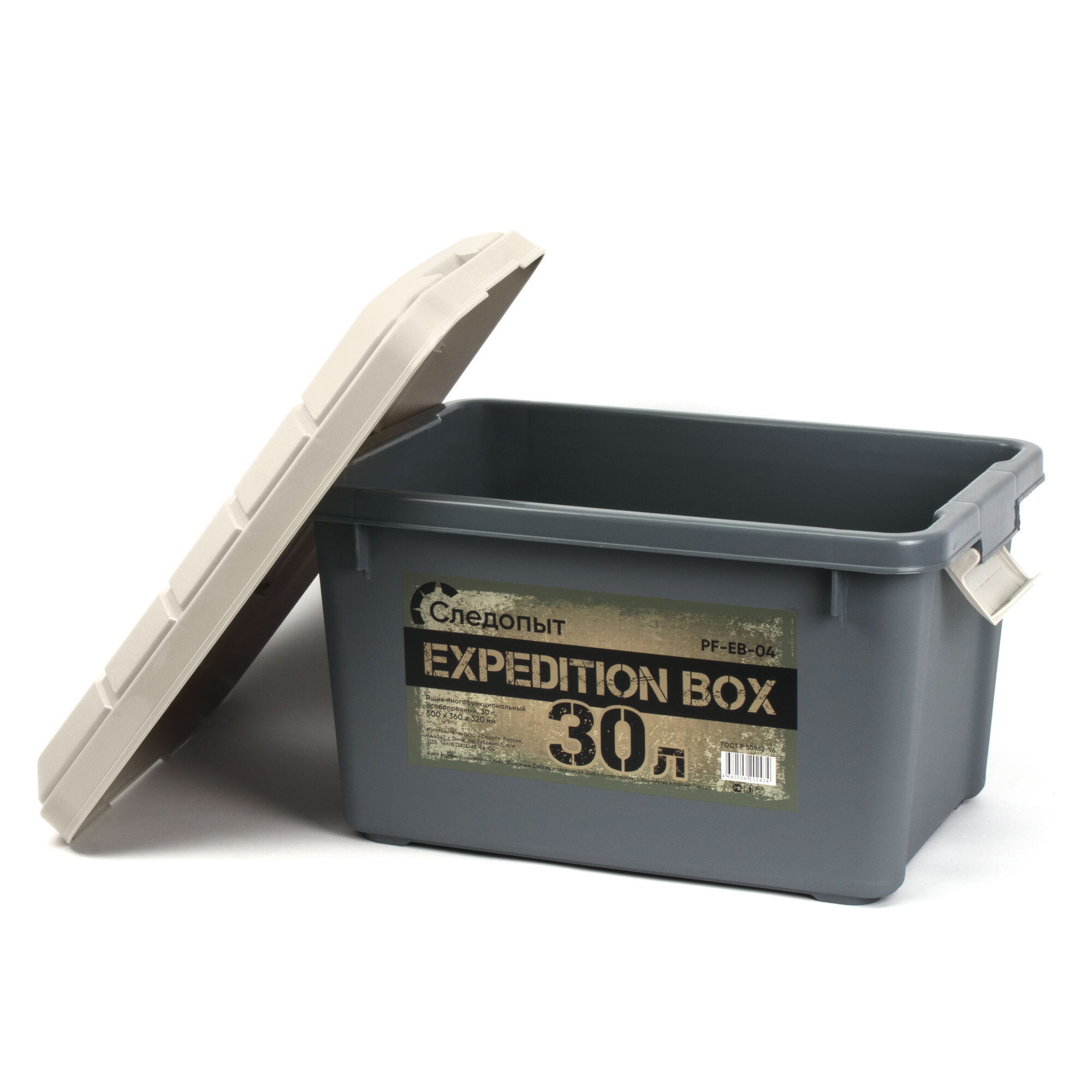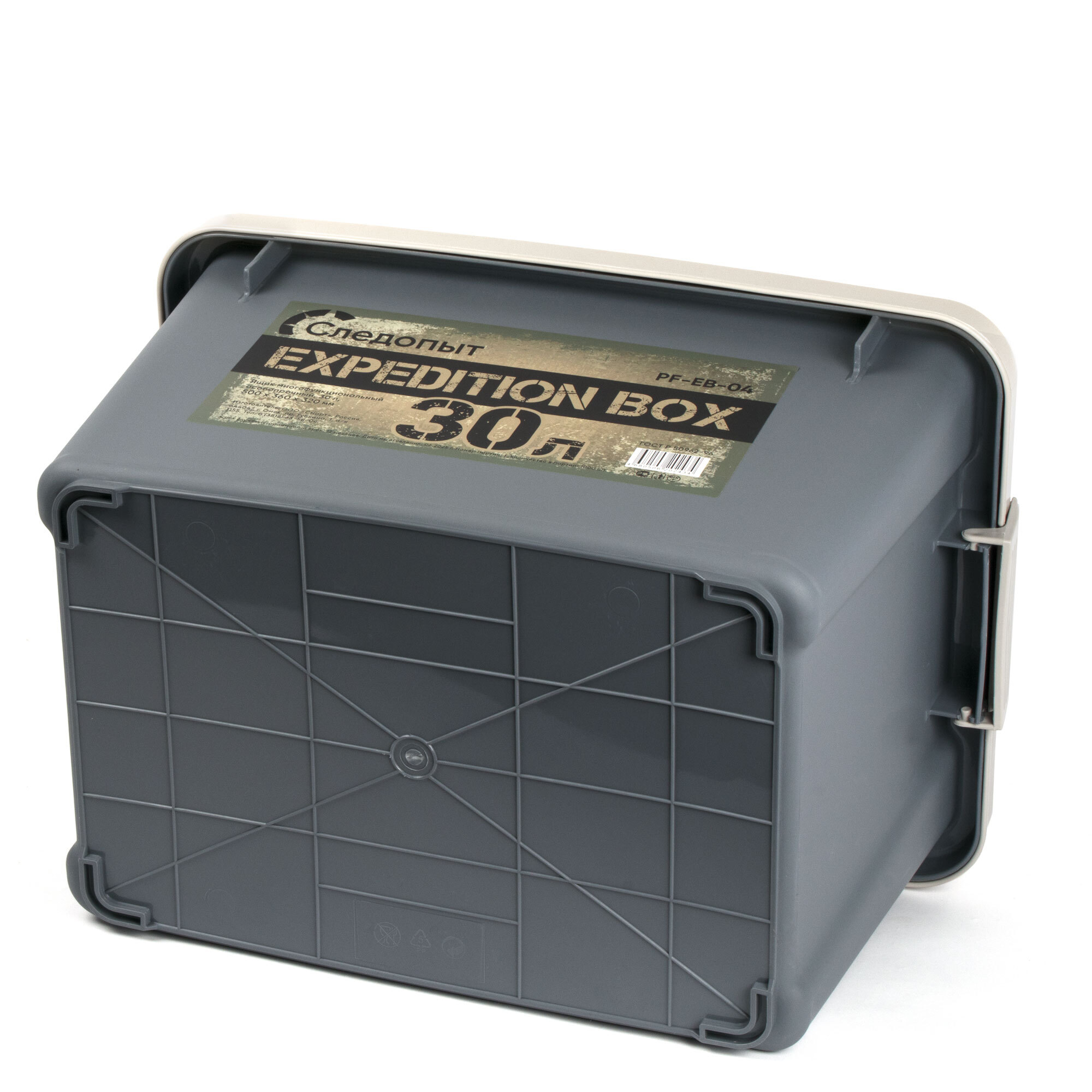 Ящик многофункциональный особопрочный СЛЕДОПЫТ Expedition Box, 30 л, 500х360х320 мм, цв. графит/бежевый/3/