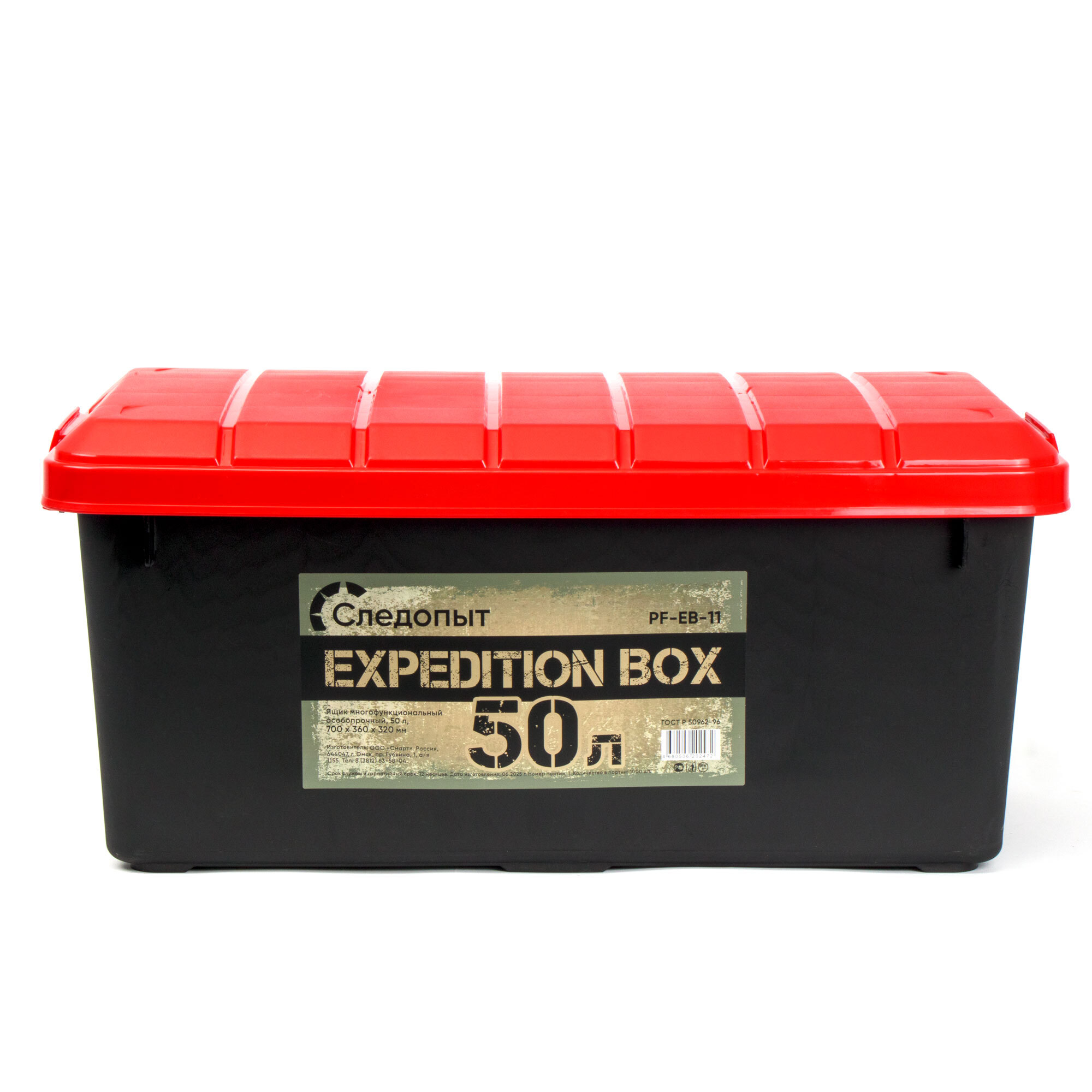 Ящик многофункциональный особопрочный СЛЕДОПЫТ Expedition Box, 50 л, 700х360х320 мм, цв. черный/красный/3/