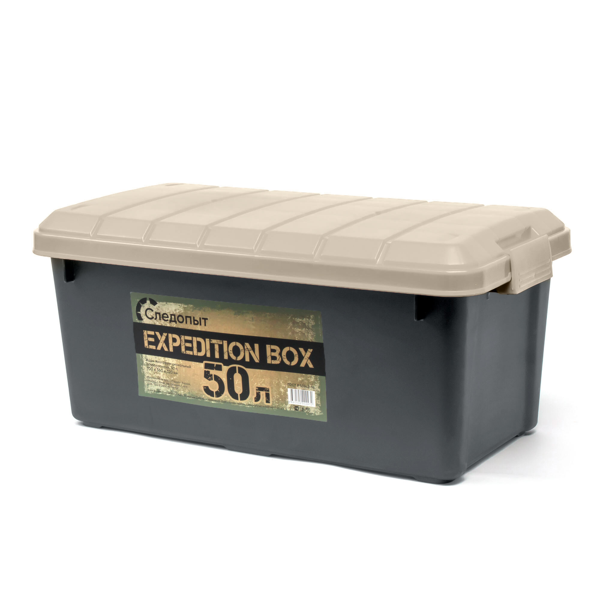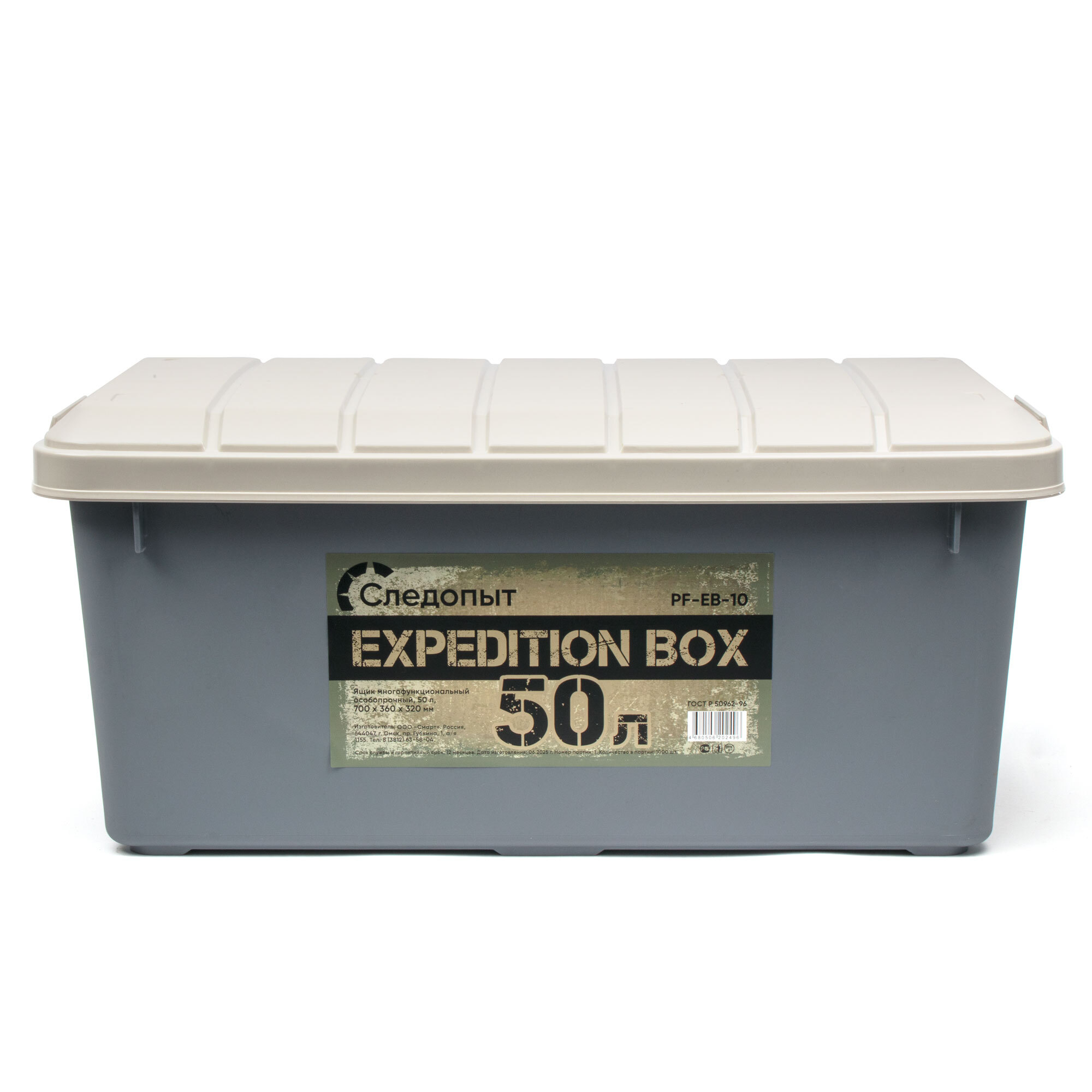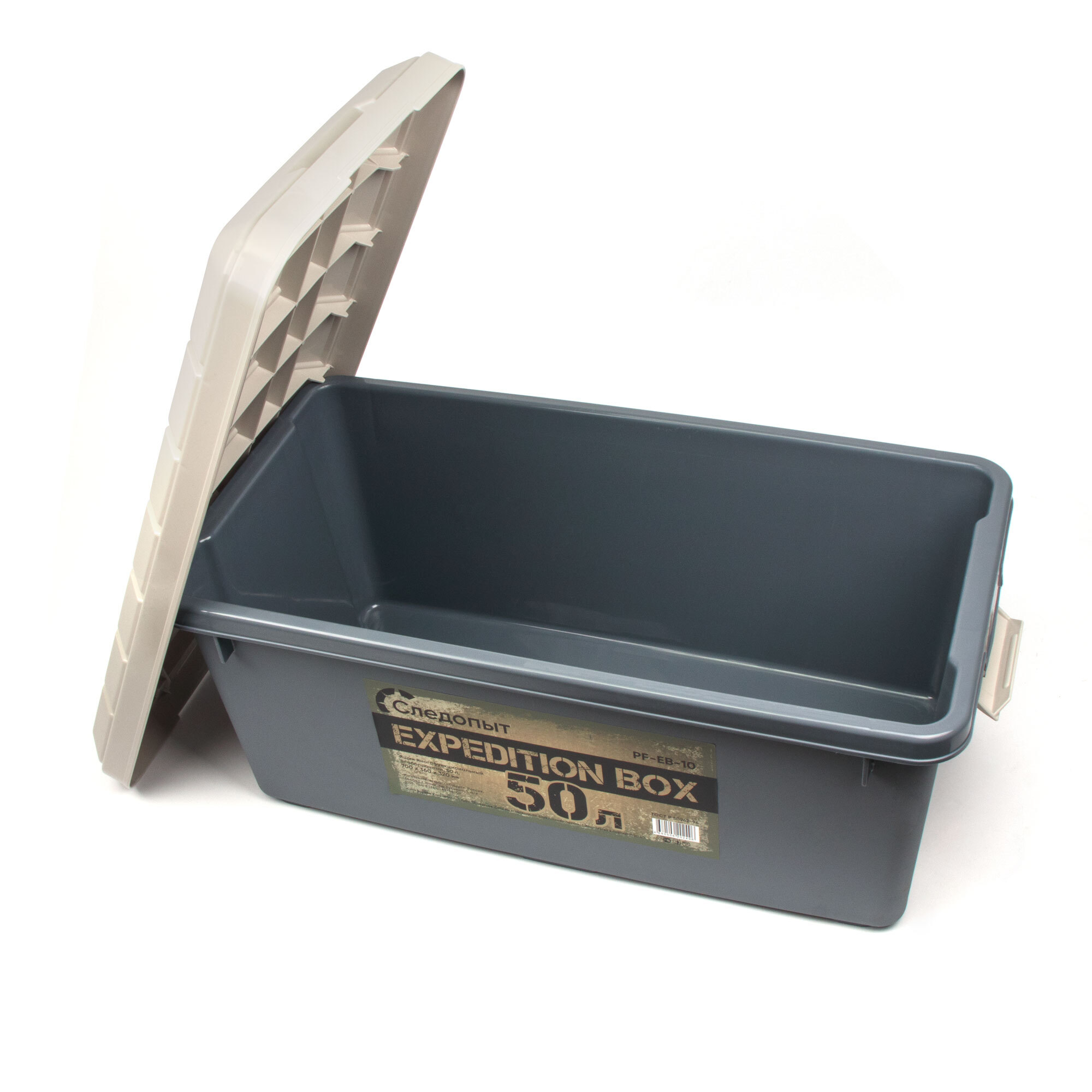 Ящик многофункциональный особопрочный СЛЕДОПЫТ Expedition Box, 50 л, 700х360х320 мм, цв. графит/бежевый/3/